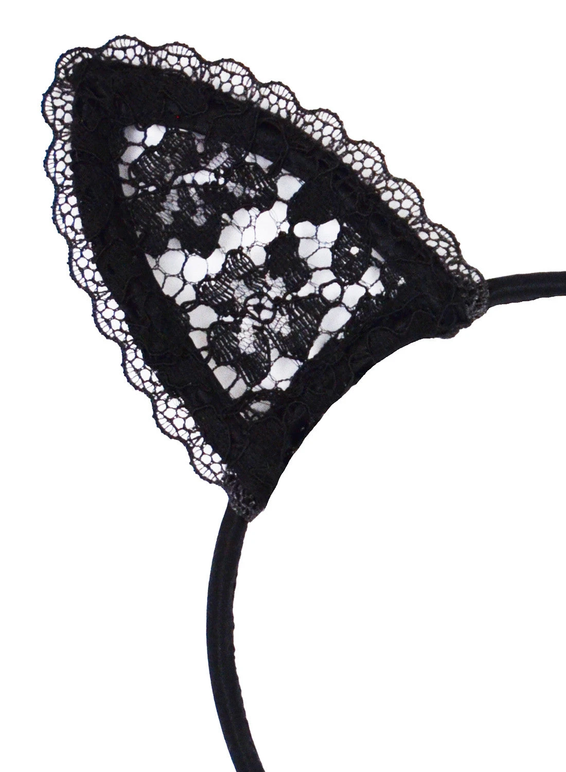 Frisky. Silk covered head band with cat ears made from French Leavers Lace. Handmade and designed by Fleur du Mal in New York. Limited edition.
