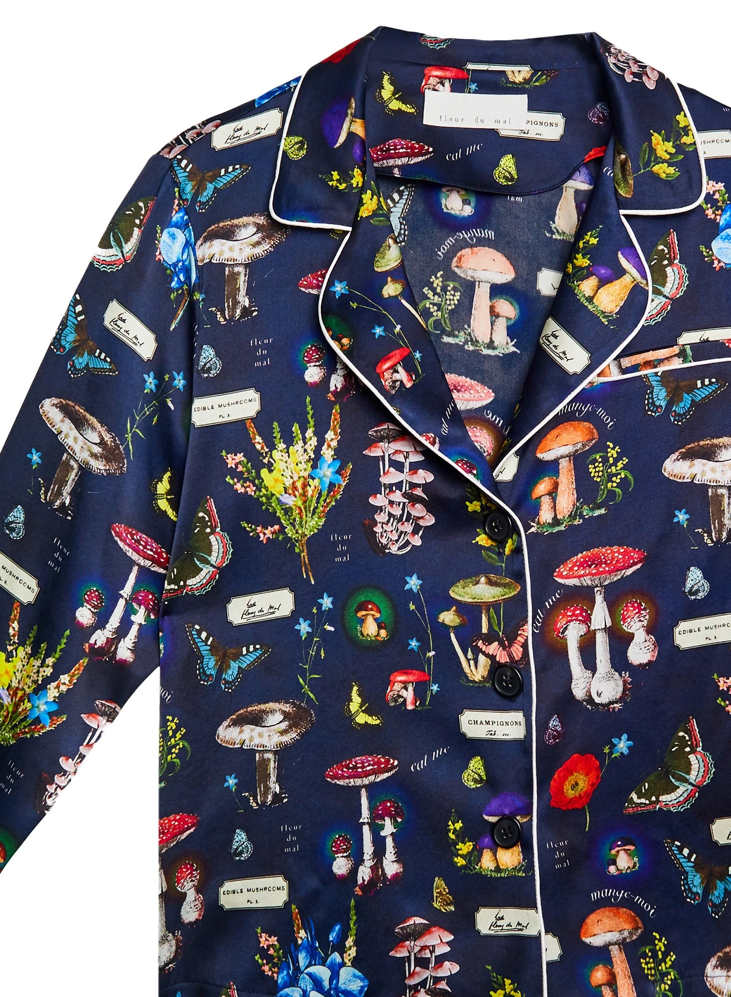 Groovy. Decadent silk satin pajama top in our Magical Mushroom print. Featuring front buttons, contrasting white trim and pocket detail. Pair with the matching Mushroom PJ Pant for a chic set that works perfectly on the streets or in the sheets.Â
