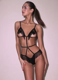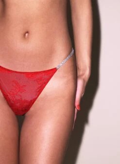 Bite me. Our Vampire Rose Embroidery Demi Bra, featuring dripping rose embroidery on sheer lace ground. Underwire cups and adjustable picot straps with o-ring detail provide subtle shaping and lift. Complete the set with the matching Vampire Rose Embroidery Thong and Garter Belt.